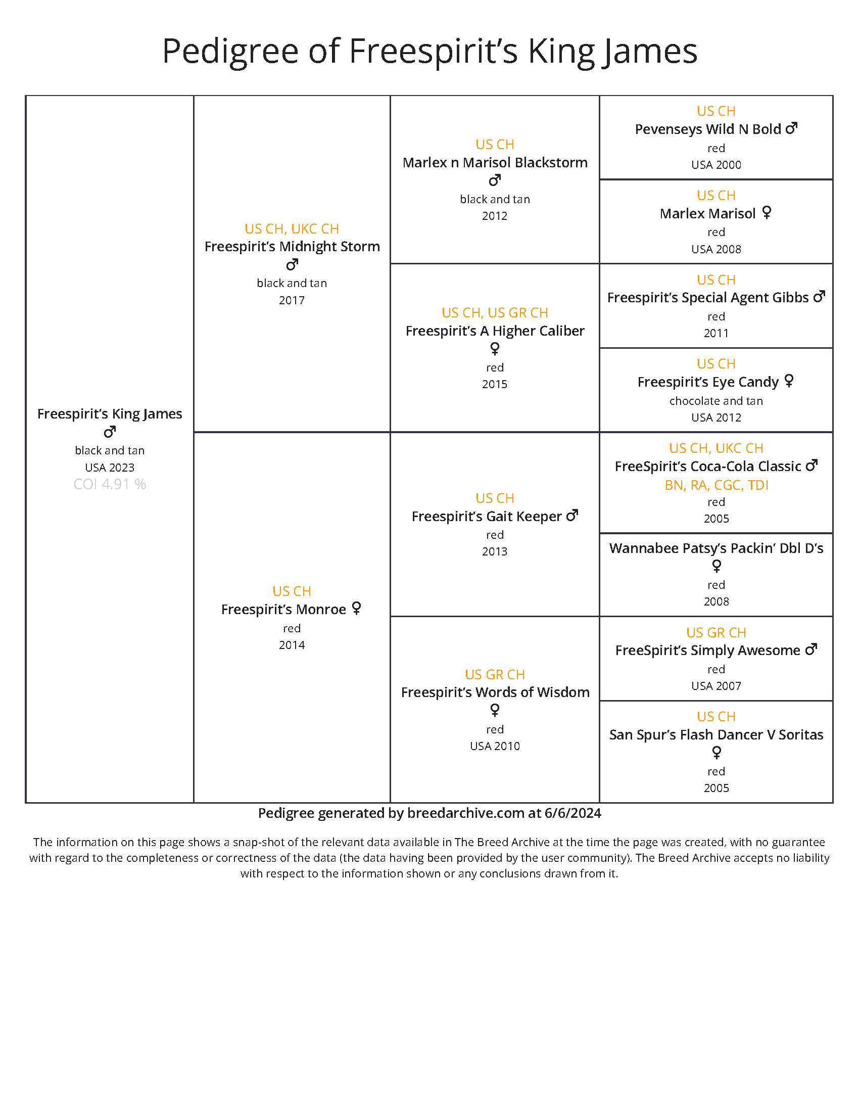 Jimmie's pedigree: