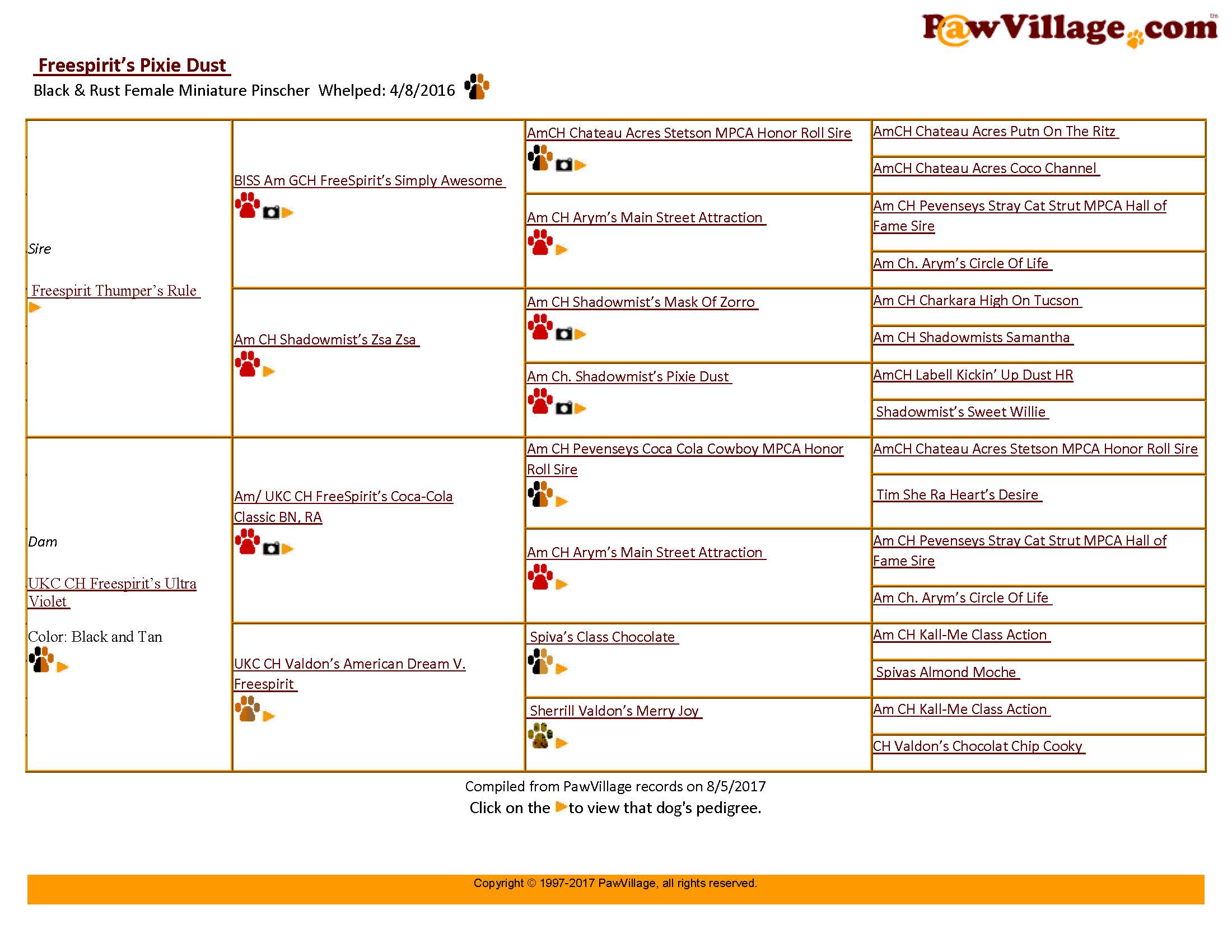 Pixie's pedigree: